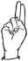 На ћирилици написано КОСТАДИН РАДОШ састоји се из 13 слова [?]. Исписано ћириличном једноручном азбуком за глувонеме:
